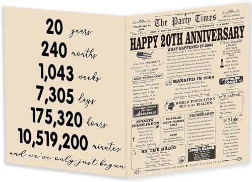 Specification: Funny 20th Wedding Anniversary Card Gifts for Mom Dad, Great 20 Wedding Years Aday Gift Ideas for Husband Wife, Vintage Twenty Years Aday Gifts for Him Her