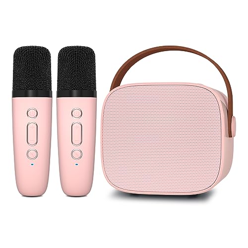 Mini Karaoke Machine for Kids,Portable Bluetooth Speaker with 2 Wireless Microphones for Kids and Adults,Gifts for Girls and Boys age 4-12 Year Old Birthday Party Home (Pinkcolor)